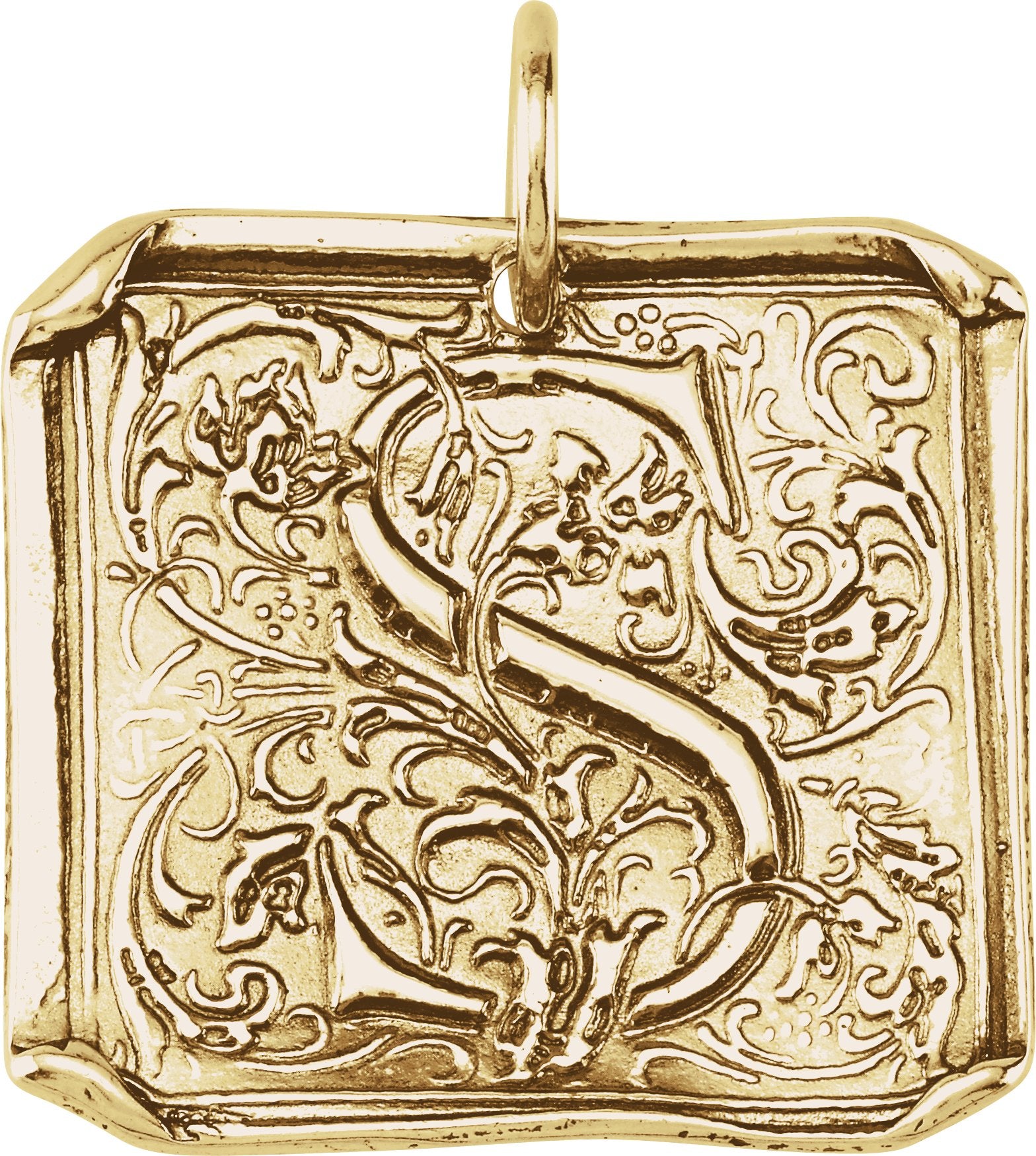 14K Yellow Gold Posh Mommy® Initial S Vintage-Inspired Pendant