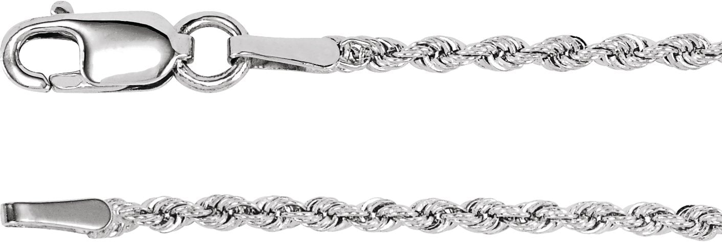 Rhodium-Plated Sterling Silver 1 mm Rope 20" Chain