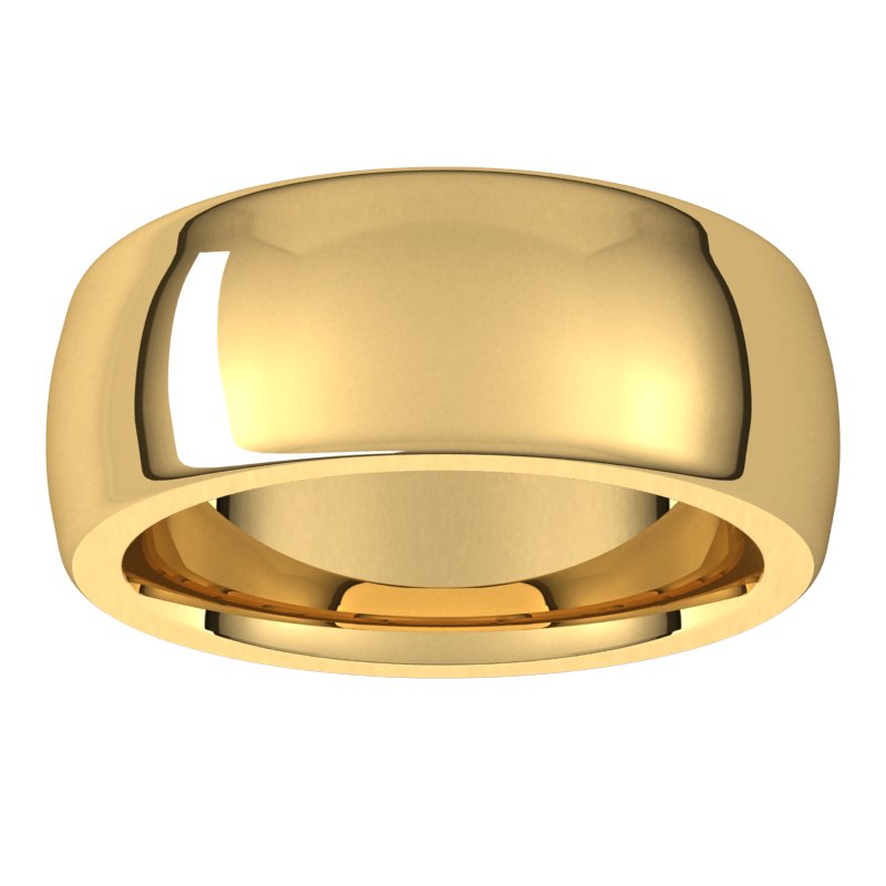 14K Yellow Gold 8 mm Heavyweight Comfort-Fit Half Round Band Size 9.5