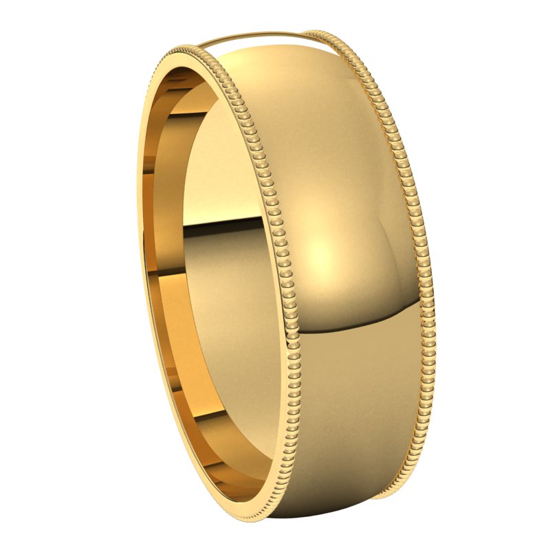 10K Yellow Gold 6 mm Milgrain Comfort-Fit Half Round Band Size 8.5