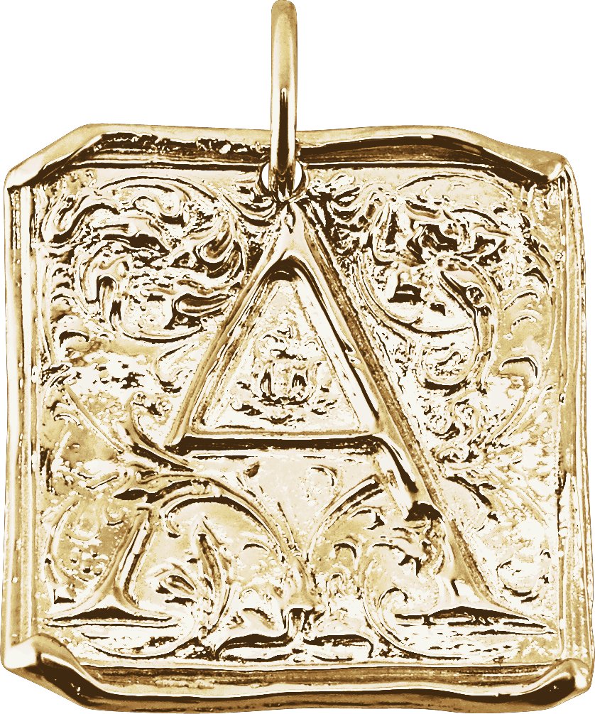 14K Yellow Gold Posh Mommy® Initial A Vintage-Inspired Pendant