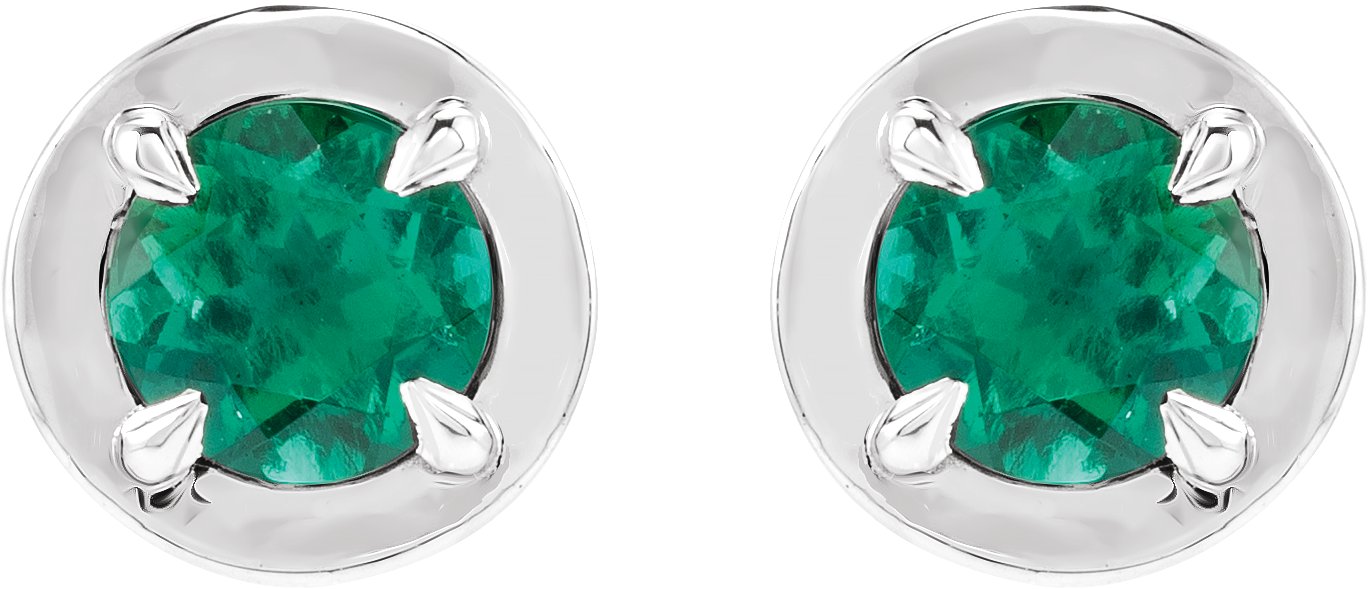 14K White Gold Lab-Grown Emerald Stud Earrings