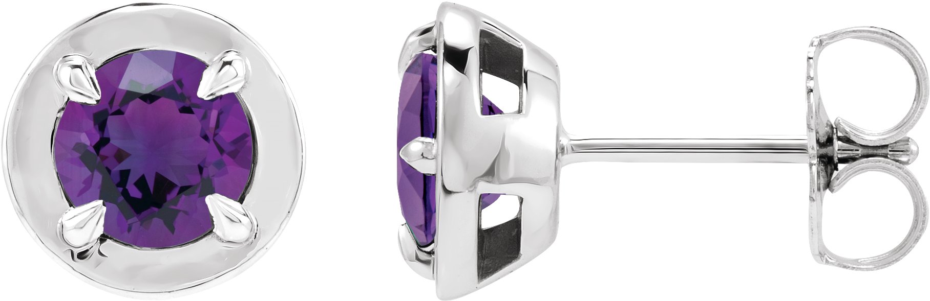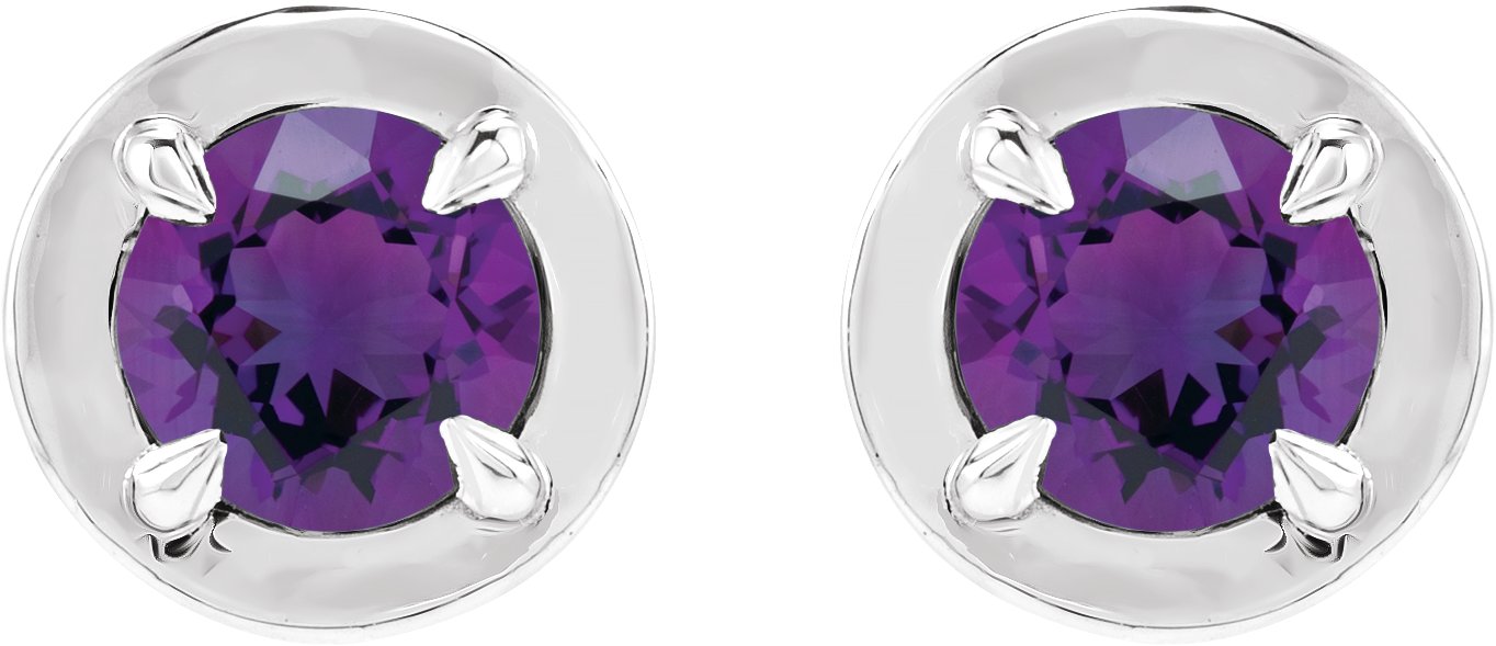 14K White Gold Natural Amethyst Stud Earrings