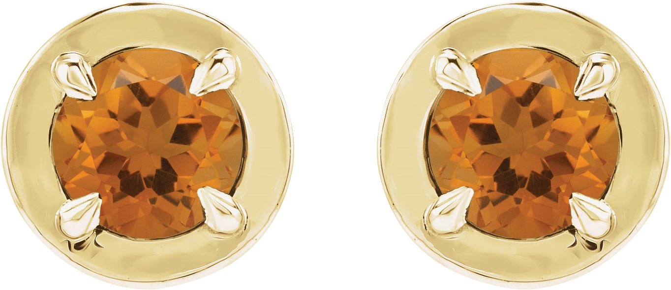 14K Yellow Gold Natural Citrine Stud Earrings