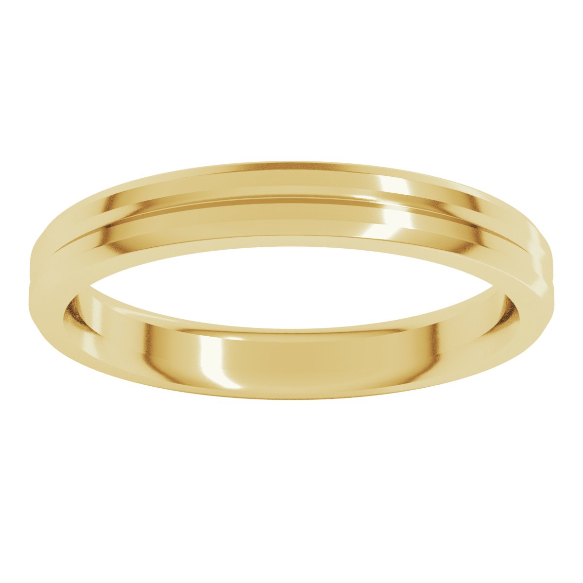 14K Yellow Gold 3 mm Beveled-Edge Grooved Comfort-Fit Flat Band Size 9