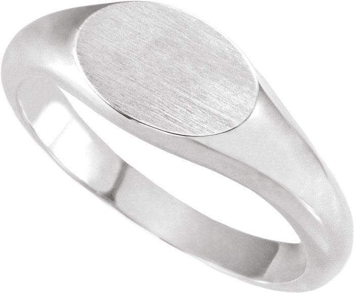 14K White Gold 10x7 mm Oval Signet Ring