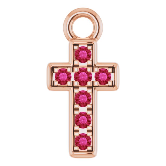 14K Rose Petite Pavé™ Natural Ruby Cross Dangle
