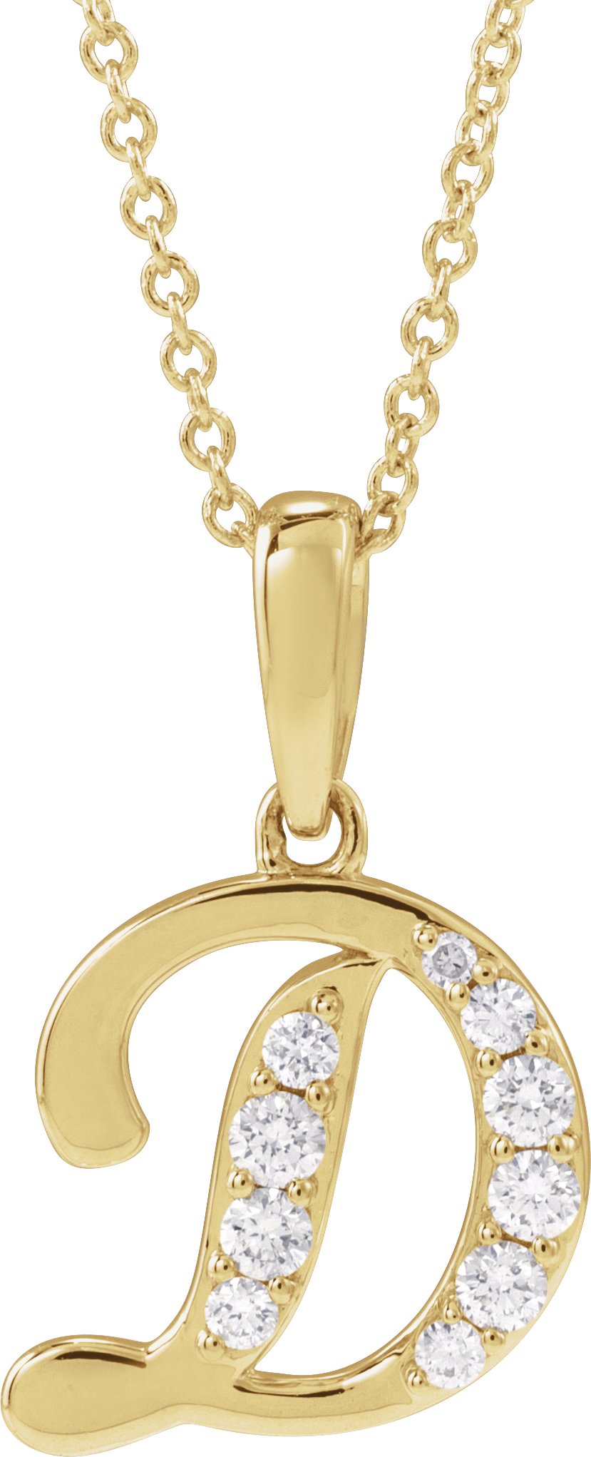 14K Yellow Gold 1/5 CTW Natural Diamond Initial D 18" Necklace