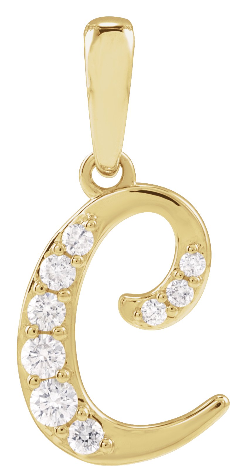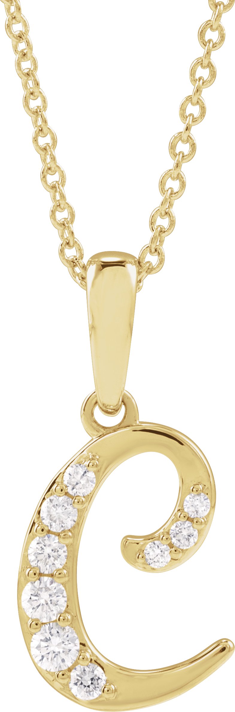 14K Yellow Gold 1/6 CTW Natural Diamond Initial C 18" Necklace