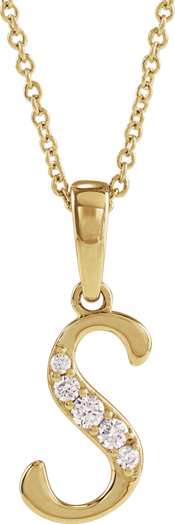 14K Yellow Gold .08 CTW Natural Diamond Initial S 18" Necklace