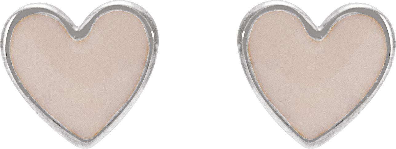 14K White Gold Pink Enamel Heart Earrings