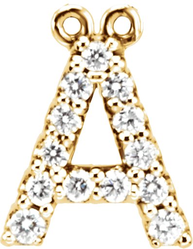 14K Yellow Gold 1/8 CTW Natural Diamond Block Initial A Necklace Center