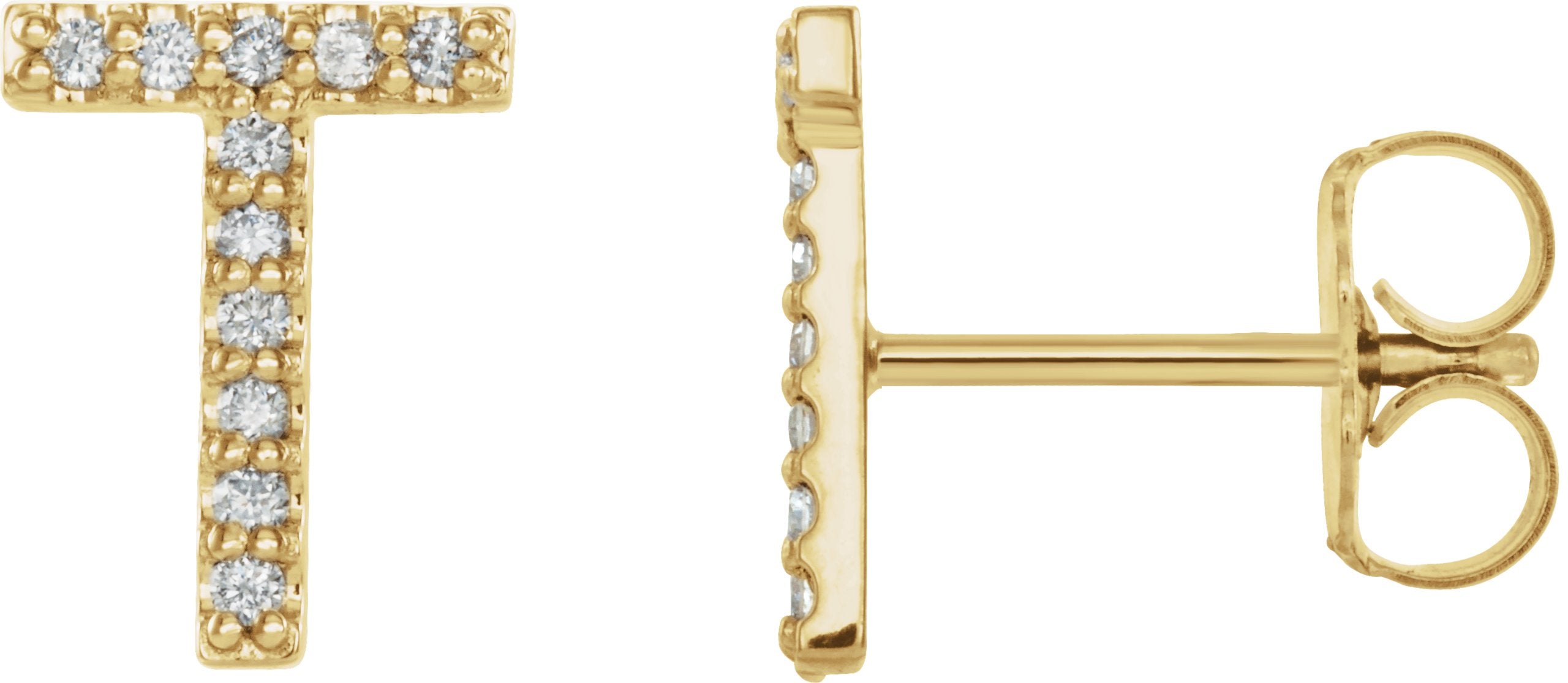 14K Yellow Gold .04 CTW Natural Diamond Initial T Earring