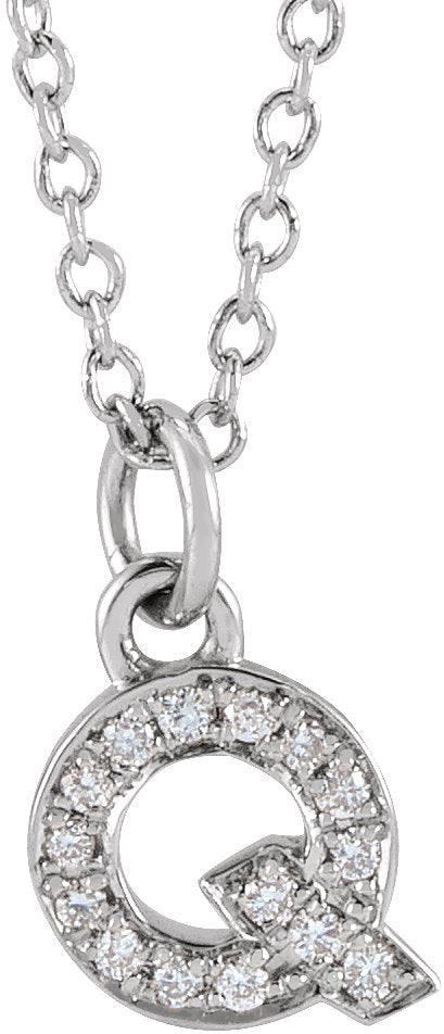 14K White Gold .05 CTW Natural Diamond Petite Initial Q 16-18" Necklace