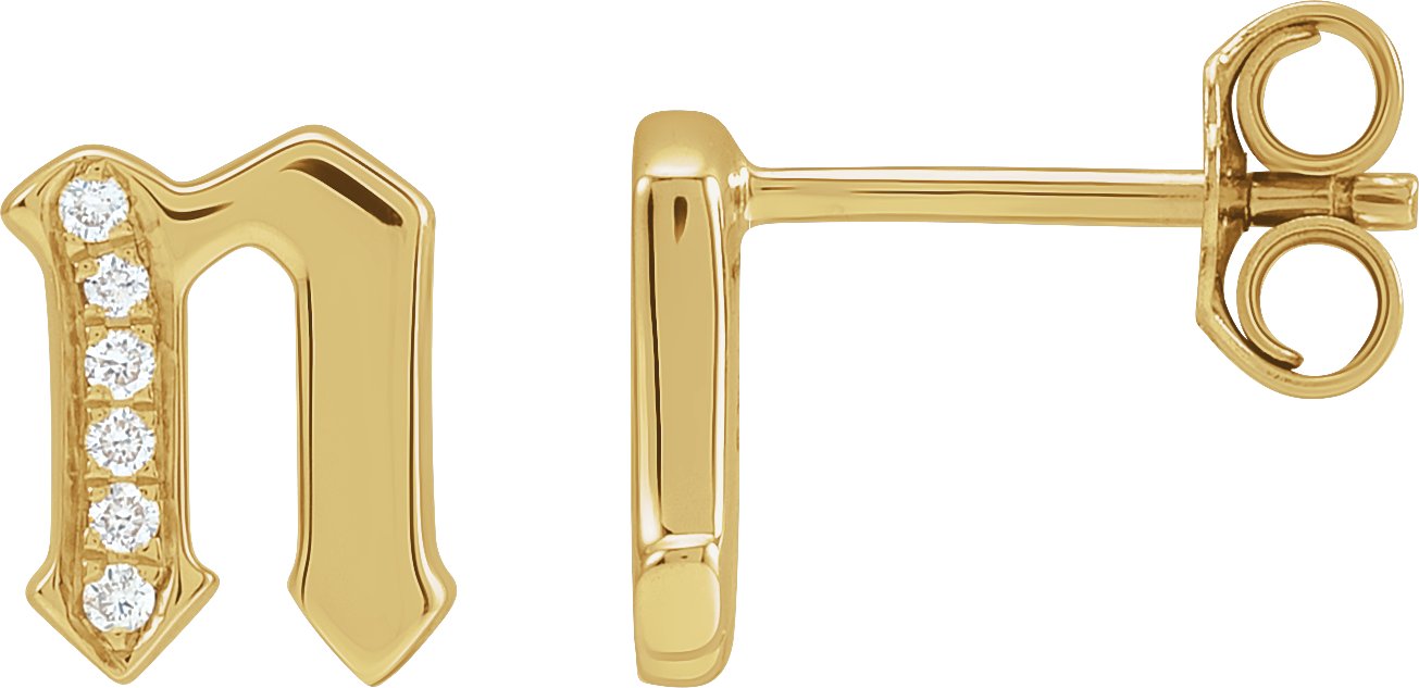14K Yellow Gold .03 CTW Natural Diamond Gothic Initial N Earring
