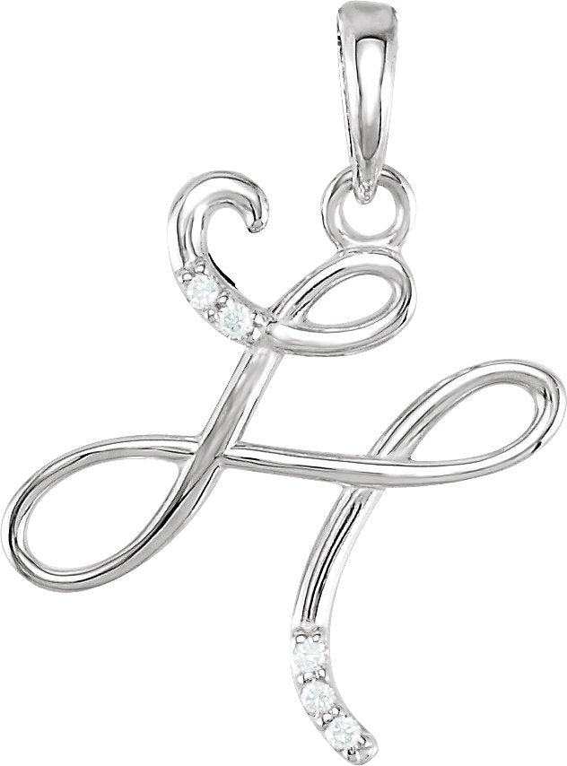 14K White Gold .025 CTW Natural Diamond Initial H Pendant