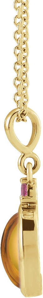 14K Yellow Gold 8x6 mm Natural Citrine & Natural Pink Tourmaline 16-18" Necklace