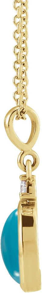 14K Yellow Gold 8x6 mm Natural Turquoise & .03 CT Natural Diamond 16-18" Necklace