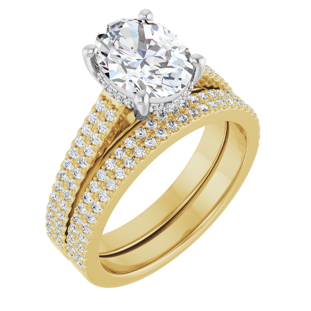 14K Yellow/White Gold 9x7 mm Oval 1/4 CTW Lab-Grown Diamond Semi-Set Engagement Ring