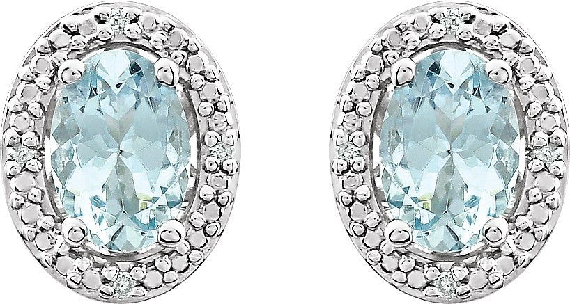 - Description: Natural Aquamarine And .025 CTW Natural Diamond Earrings