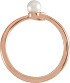 14K Rose Cultured White Akoya Pearl & 1/10 CT Natural Diamond Ring