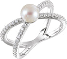 14K White Cultured White Freshwater Pearl & 3/8 CTW Natural Diamond Ring