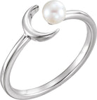 Sterling Silver Cultured White Freshwater Pearl Crescent Moon Ring