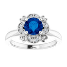 14K White Lab-Grown Blue Sapphire & .04 CTW Natural Diamond Ring