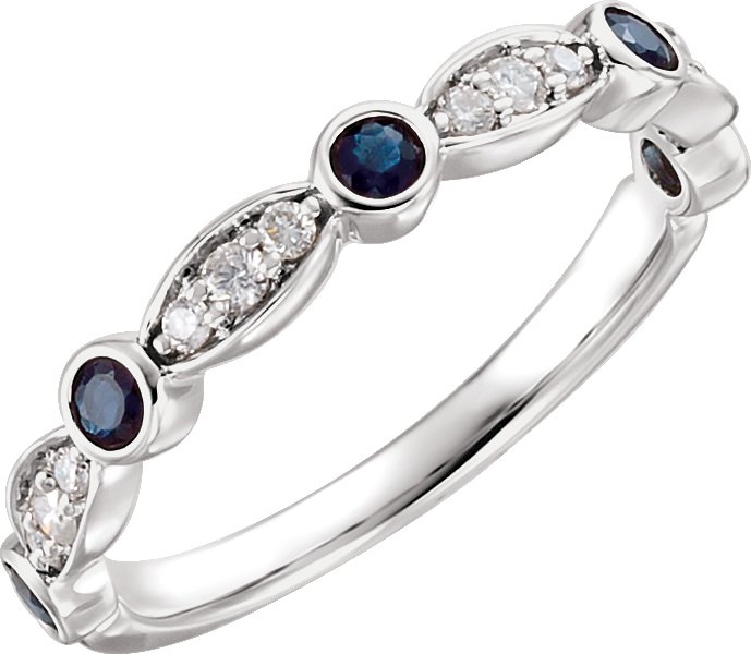 - Description: Natural Blue Sapphire And 1/6 CTW Natural Diamond Ring