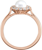14K Rose Cultured White Freshwater Pearl & 3/8 CTW Natural Diamond Ring