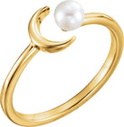 14K Yellow Cultured White Freshwater Pearl Crescent Moon Ring