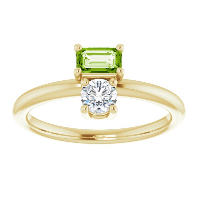 14K Yellow Natural Peridot & Natural White Sapphire Ring