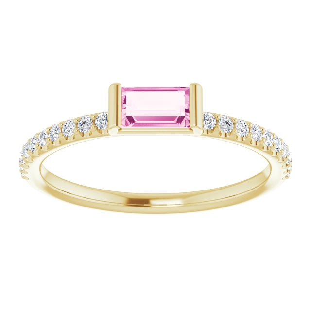 14K Yellow Natural Pink Sapphire & 1/6 CTW Natural Diamond Stackable Ring