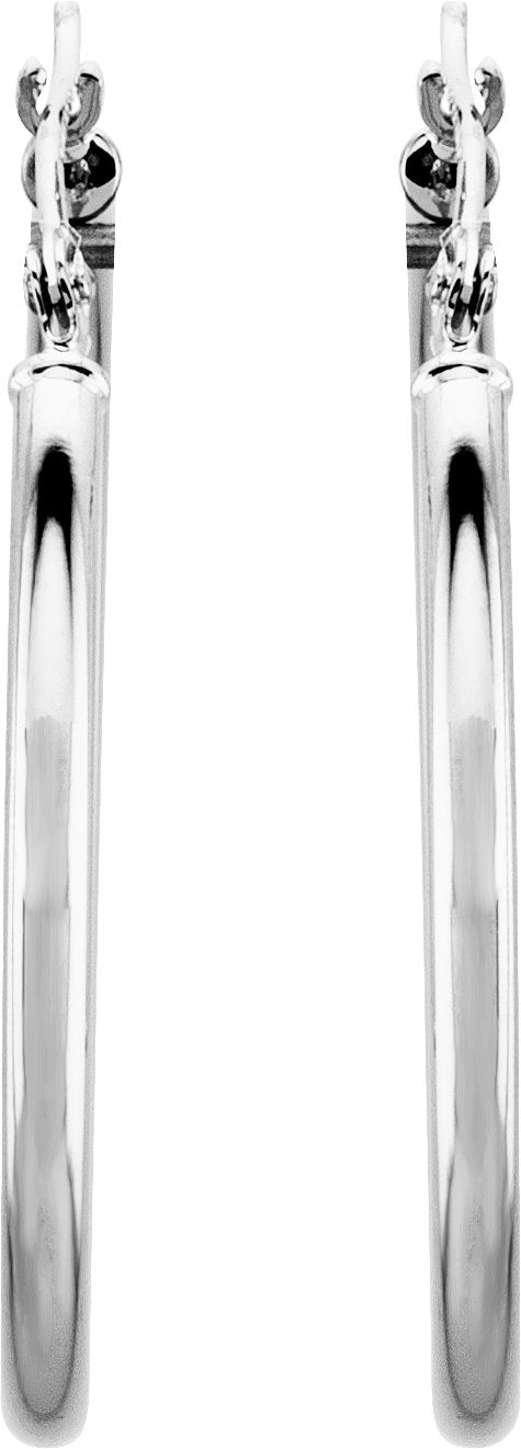 14K White Tube 30 mm Hoop Earrings