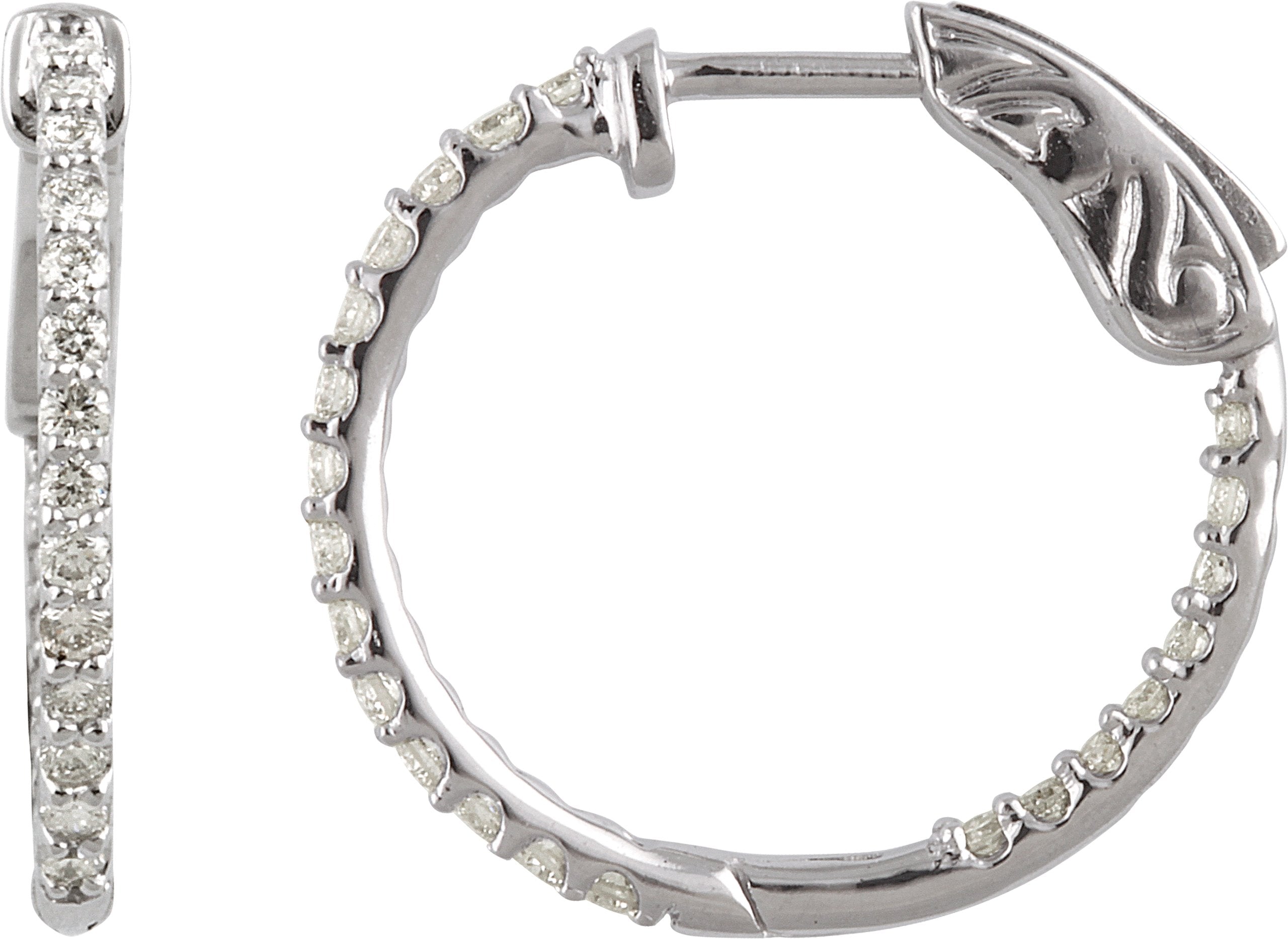 - Description: Imitation White Cubic Zirconia Inside-Outside Hinged Hoop Earrings