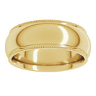 14K Yellow 7 mm Milgrain Stepped-Edge Comfort-Fit Half Round Band Size 8.5