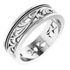 10K White 6.4 mm Milgrain Sculptural Flat Band Size 7.5