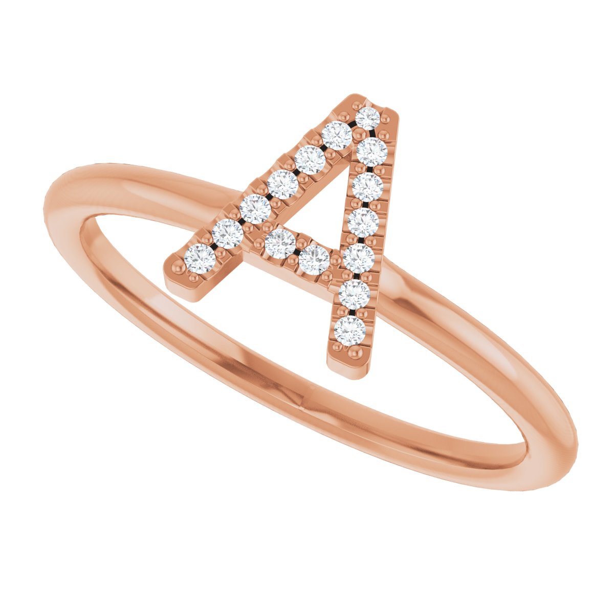 14K Rose .06 CTW Natural Diamond Initial A Ring