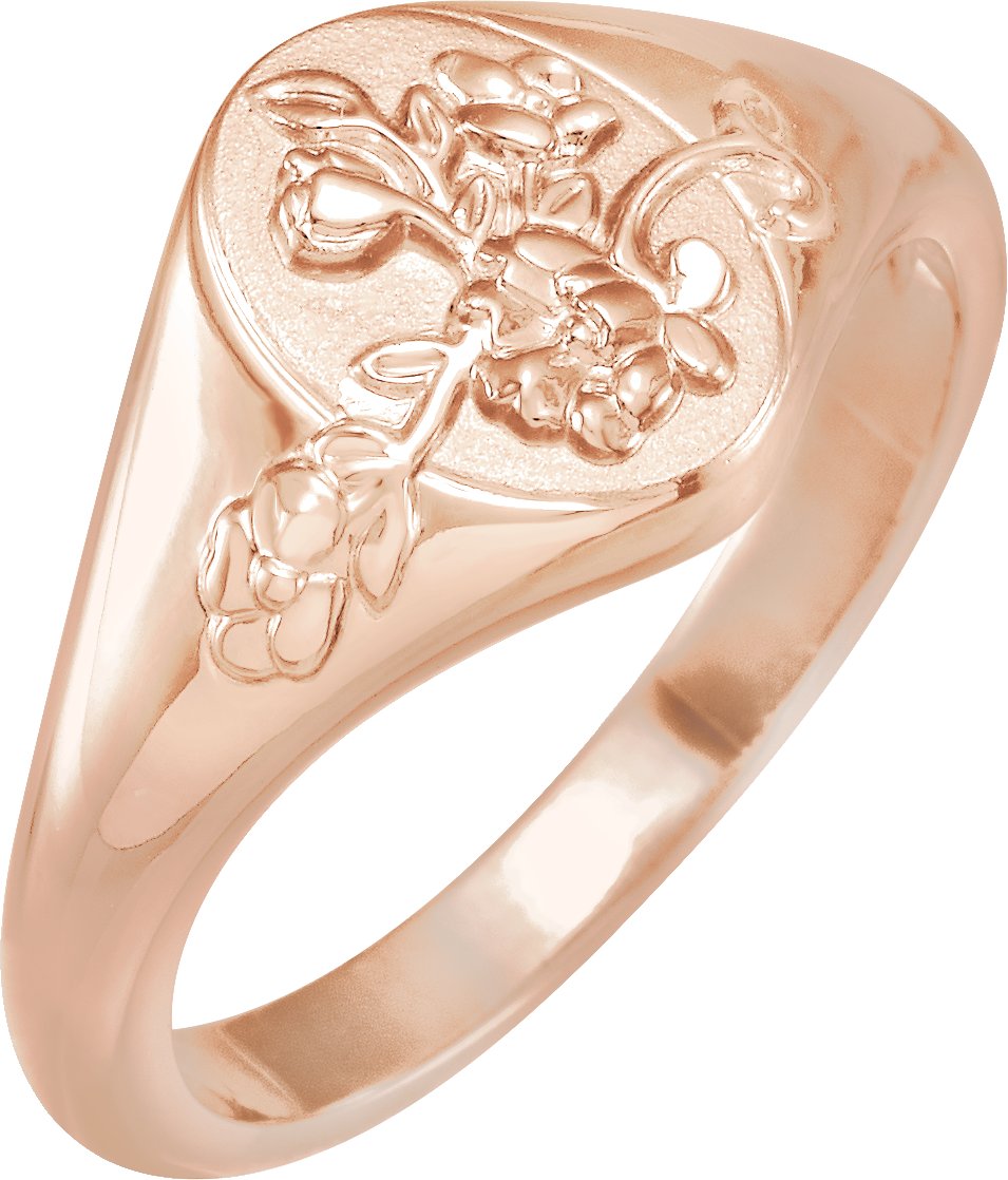 14K Rose 10.1 mm Oval Floral Signet Ring