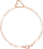 14K Rose Heart & Paperclip-Style Chain 7" Bracelet