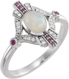 - Description: Natural Ethiopian Opal Natural Pink Sapphire And .06 CTW Natural Diamond Ring
