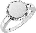 14K White 12 mm Round Signet Ring