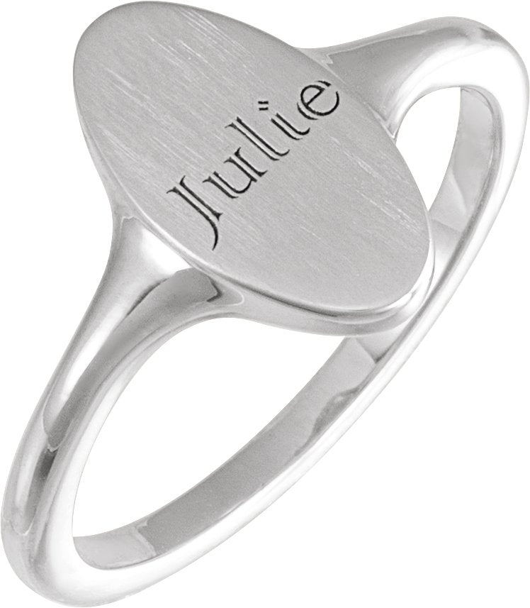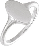 14K White 13x7 mm Oval Brushed Top Signet Ring
