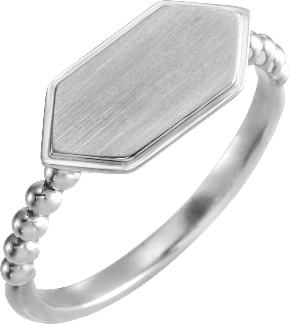 14K White 15x7 mm Geometric Signet Ring