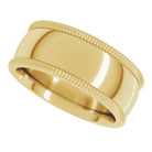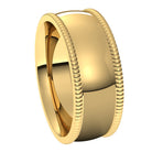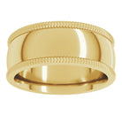 10K Yellow 8 mm Extra Large Milgrain Comfort-Fit Half Round Band Size 9