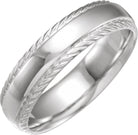 14K White 6 mm Rope Stepped-Edge Half Round Band Size 9