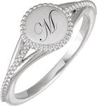 14K White 8.7 mm Engravable Beaded Signet Ring