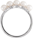 14K White Cultured White Akoya Pearl & 1/8 CTW Natural Diamond Stackable Ring