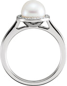 14K White Cultured White Freshwater Pearl & .06 CTW Natural Diamond Halo-Style Ring