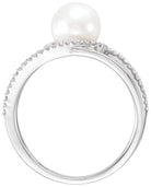 - Description: Cultured White Freshwater Pearl And 1/8 CTW Natural Diamond Ring